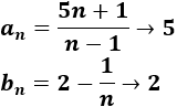 Si \(a_n\) converge y \(b_n\) diverge, su cociente es convergente a 0.