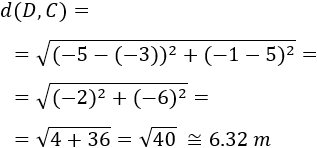 Distancia entre los puntos \(C=(-5,-1)\) y \(D=(-3,5)\):