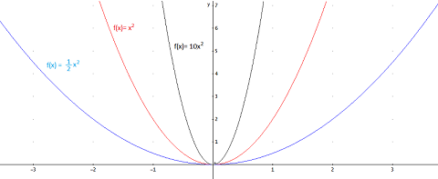 Además, el valor absoluto de a, |a|, influye en el crecimiento (decrecimiento) de la parábola: cuanto mayor sea |a|, más cerrada será la parábola, es decir, más rápidamente crece (o decrece, según el signo de a).